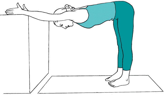 Tehnică: Stai în fața unui scaun sau a unei mese de care te poți sprijini. Depărtează picioarele puțin mai mult decât lățimea umerilor și îndoaie ușor genunchii. Apleacă-te împingând bazinul înapoi, ca și cum te-ai așeza pe un scaun aflat în spatele tău. Menține spatele drept. Înclină-te până la aproximativ 45° și menține poziția timp de două respirații. Revino lent. Repetă de zece ori.