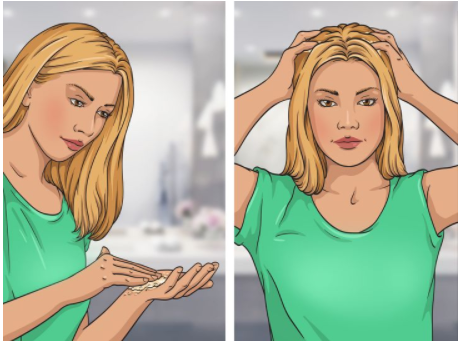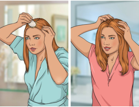 După spălarea și condiționarea părului, turnați acest amestec pe scalp și lăsați-l să stea timp de 10 minute cu un capac pe păr, apoi clătiți.