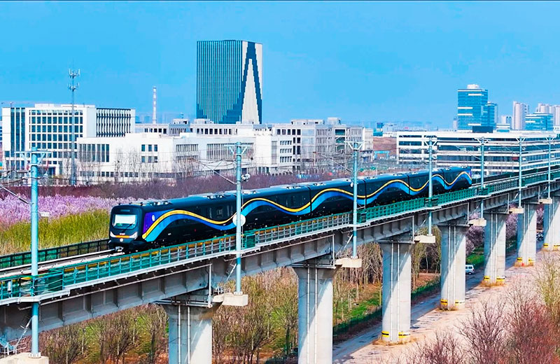 Ruta de 60 de kilometri conectează 41 de stații și formează o coloană vertebrală cheie de transport în această parte a orașului.Trenul a fost dezvoltat în întregime de compania chineză CRRC Qingdao Sifang Co, care dezvoltase deja vehicule feroviare moderne. De data aceasta, producătorul a ales o soluție inovatoare de material structural: fibra de carbon. Aceasta a făcut vehiculul cu 11% mai ușor decât omologii săi tradiționali din oțel.