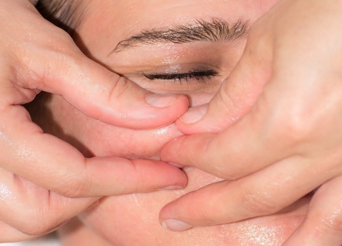 Inainte de a începe, este util să respirați adânc de câteva ori pentru a vă relaxa corpul și a elibera tensiunea din mușchii faciali. Apoi, frecați-vă bine palmele pentru a le încălzi: pielea reacționează mai activ atunci când este atinsă de mâini calde.