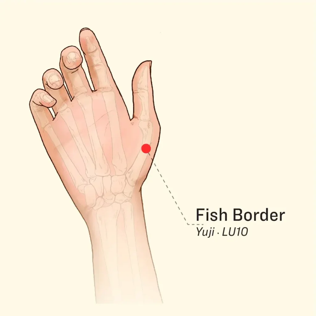 Metodă: Punctul de acupunctură Yuji este situat pe movila cărnoasă de la baza degetului mare, de-a lungul marginii unde pielea palmei întâlnește dosul mâinii – aproximativ la jumătatea primului os metacarpian. Atingeți ușor ambele mâini una de cealaltă de 30 până la 50 de ori pe zi.