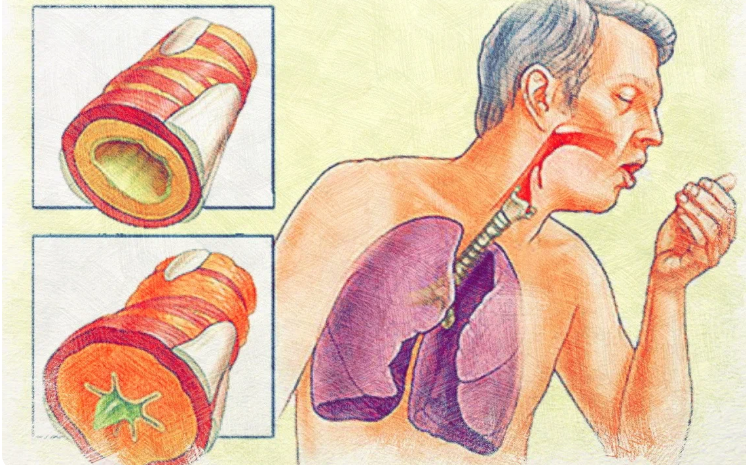 Mucusul poate înfunda bronhiile și poate interfera cu respirația normală.